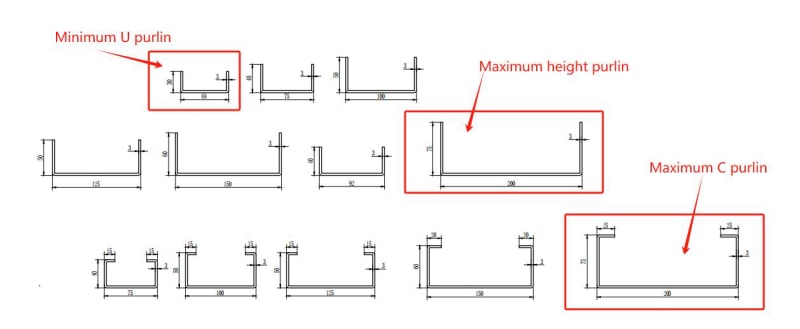 U型檁條底寬65-200mm