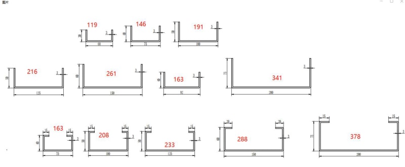 上面的紅色數(shù)字是3mm厚度的輸入材料寬度。
