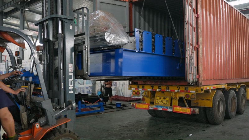 走進(jìn)中拓冷彎的生產(chǎn)車間,主通道上整齊排列著已進(jìn)入待裝箱狀態(tài)的美國樓承板機(jī),它們即將踏上前往全球各地的旅程。在冷彎成型設(shè)備行業(yè),長途運(yùn)輸對(duì)設(shè)備品質(zhì)的考驗(yàn)一直是客戶關(guān)注的焦點(diǎn)。不少客戶都曾遇到過這樣的問題:設(shè)備在國內(nèi)測試時(shí)性能表現(xiàn)優(yōu)異,但經(jīng)過長途運(yùn)輸?shù)诌_(dá)目的地后,卻頻繁出現(xiàn)各種狀況,小到卸集裝箱時(shí)螺絲掉落,大到影響正常生產(chǎn)運(yùn)行。而中拓冷彎成型設(shè)備,憑借對(duì)每個(gè)細(xì)節(jié)的準(zhǔn)確把控,成功攻克了這一難題,確保設(shè)備即便經(jīng)歷長途運(yùn)輸,品質(zhì)依舊如一。